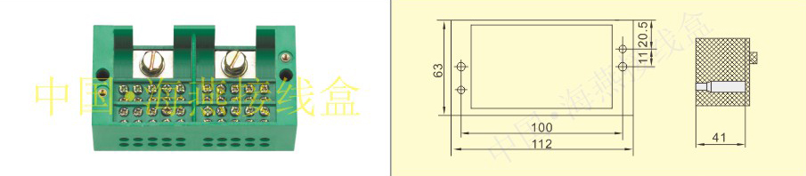 英文名称:Single-phase two-inlet twenty-meter-outlet terminal block