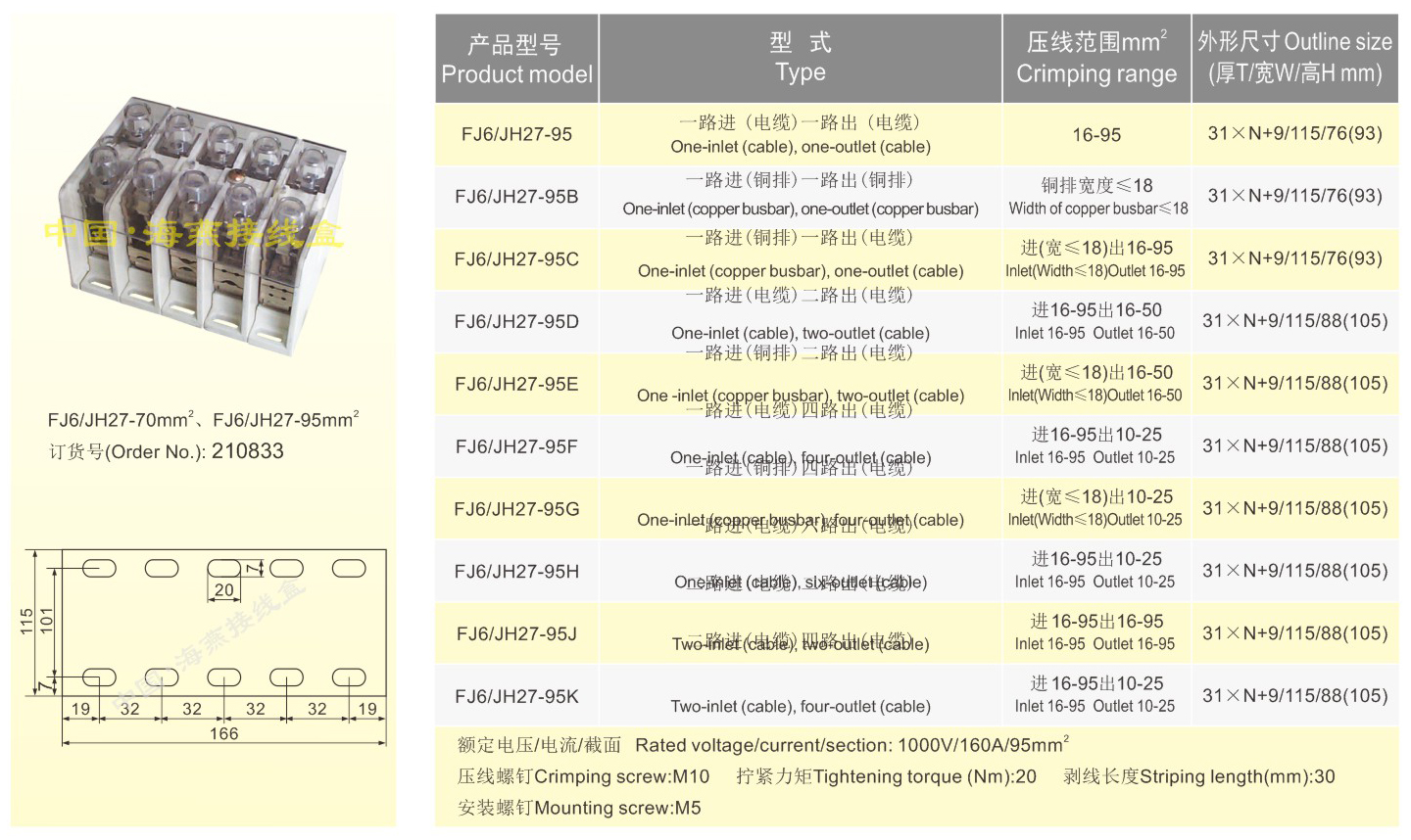 产品分类:FJ6/JH27系列大电流接线端子大电流分线端子105-107
