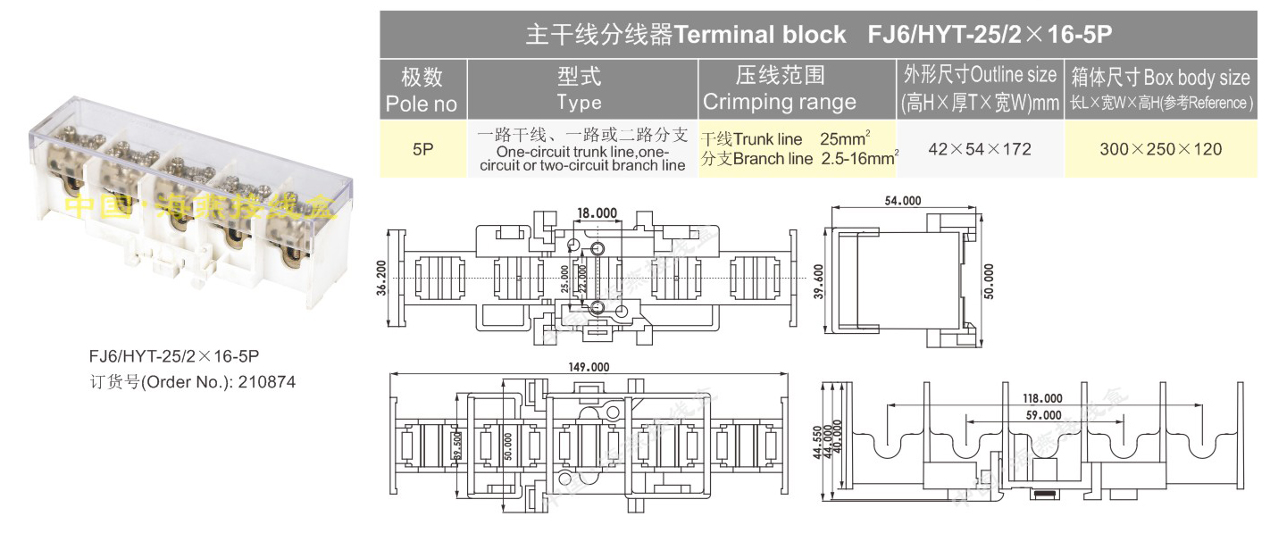 FJ6/HYT-25/2×16-5P主干线分线器