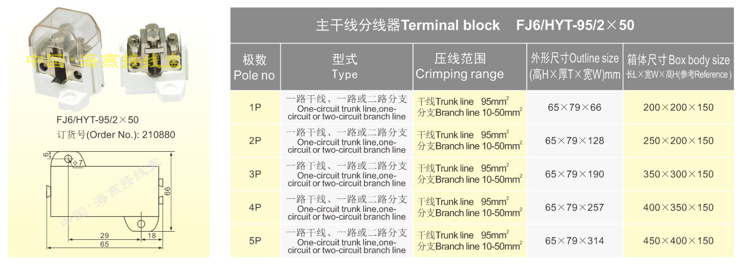 FJ6/HYT-95/2×50主干线分线器
