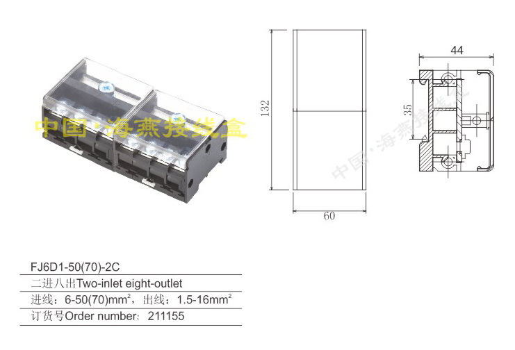 英文名称:combined terminal blocks(two-inlet eight-outlet)