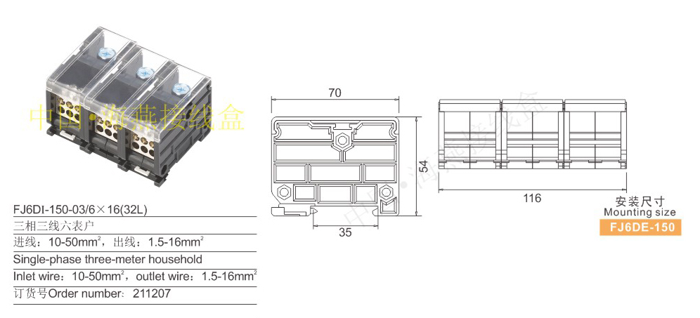 产品分类:FJ6DI-150-01导轨式组合接线端子172-181