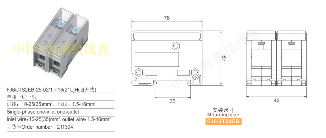 产品分类:FJ6/JTS2E1,JTS2EB-02多用途端子单相206-208