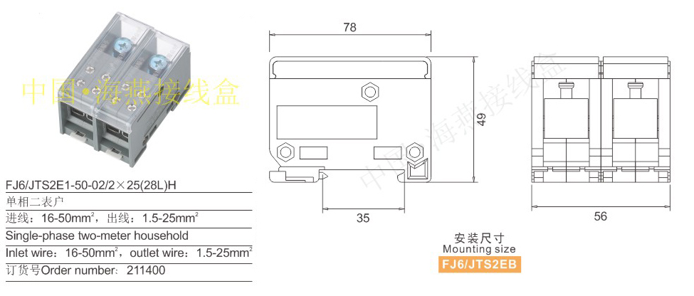 产品分类:FJ6/JTS2E1,JTS2EB-02多用途端子单相206-208