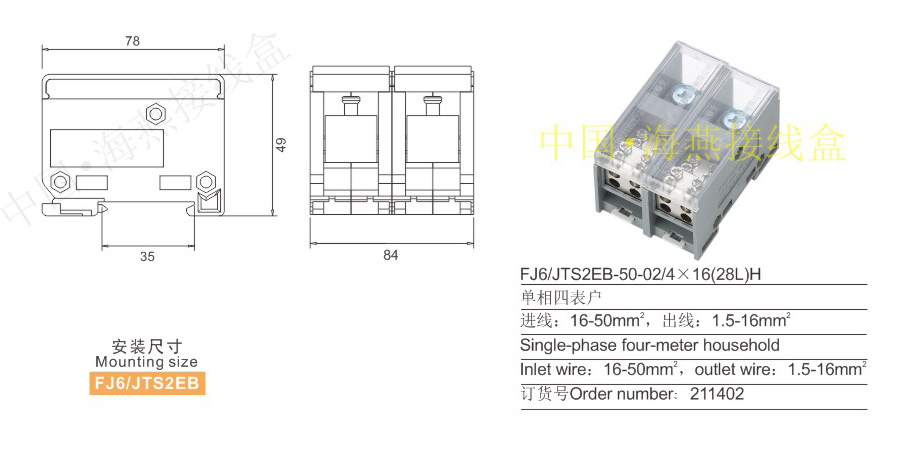 产品分类:FJ6/JTS2E1,JTS2EB-02多用途端子单相206-208