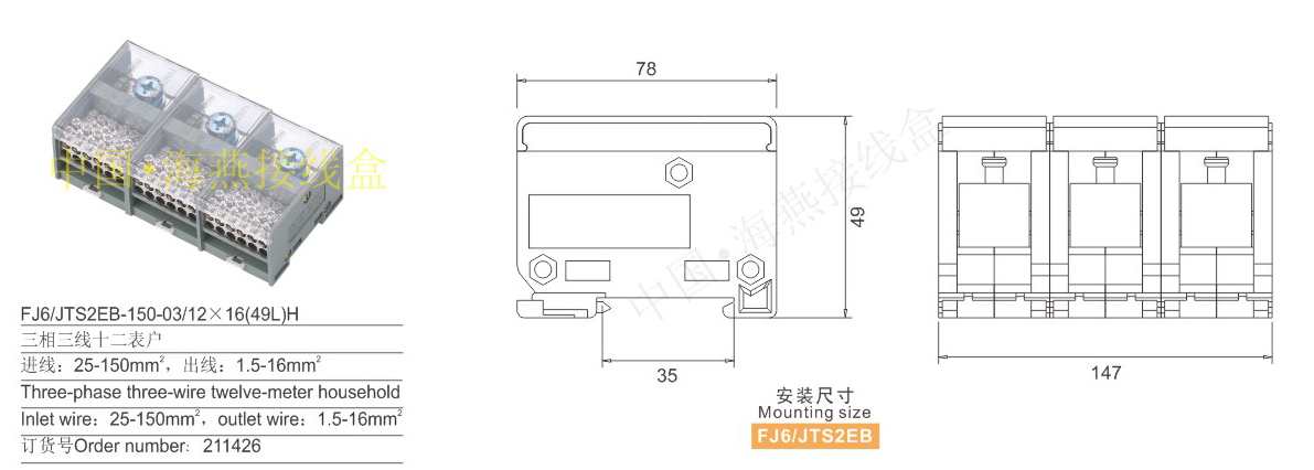 产品分类:FJ6/JTS2E1,JTS2EB-03多用途端子三相三线209-211