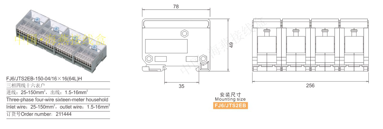 产品分类:FJ6/JTS2E1,JTS2EB-04多用途端子三相四线212-216