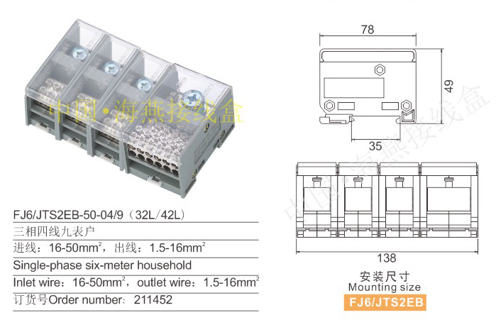 产品分类:FJ6/JTS2E1,JTS2EB-04多用途端子三相四线212-216