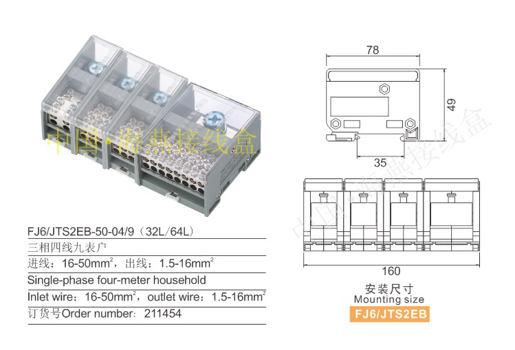 产品分类:FJ6/JTS2E1,JTS2EB-04多用途端子三相四线212-216