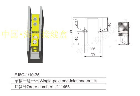 英文名称:Single-pole series heavy current terminal blocks for measuring box (hole insertion type)