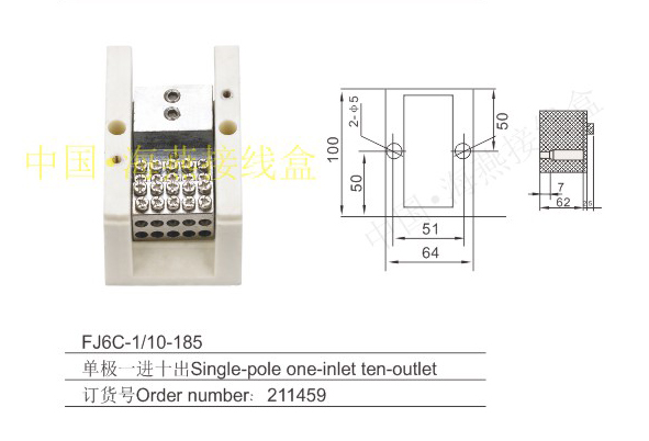 英文名称:Single-pole series heavy current terminal blocks for measuring box (hole insertion type)