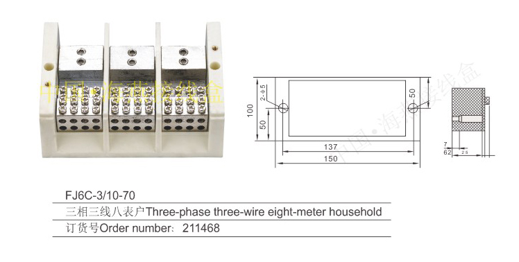 英文名称:Three-phase three-wire series heavy current terminal blocks for measuring box (hole insertion type)