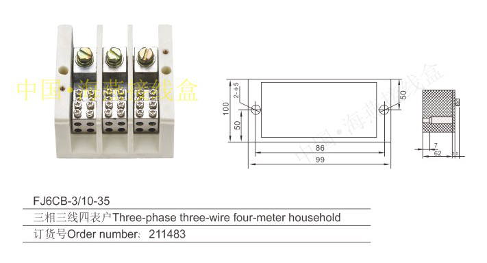 英文名称:Three-phase three-wire series heavy current terminal blocks for measuring box (hole insertion type)