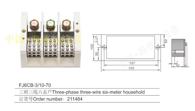 英文名称:Three-phase three-wire series heavy current terminal blocks for measuring box (hole insertion type)