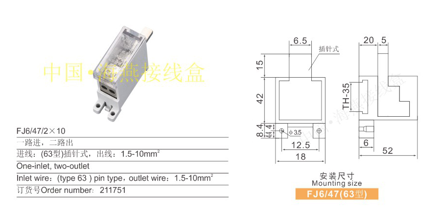 FJ6/HY系列插入式一进一出计呈箱接线盒019
