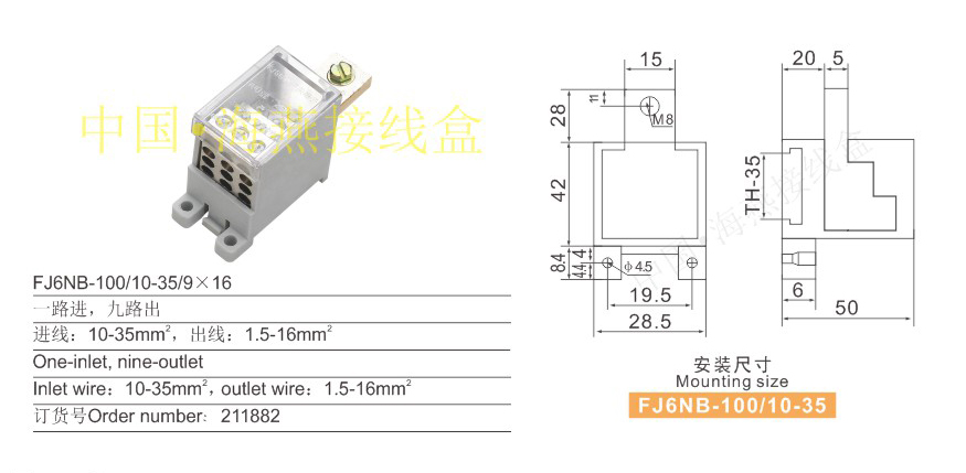 产品分类:FJ6NB- 100/10-35系列独立式零线端子接鼻式255