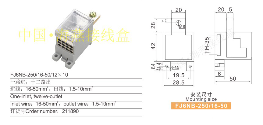 产品分类:FJ6NB- 250/16-50系列独立式零线端子接鼻式256