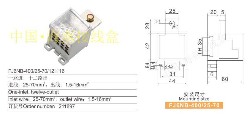 产品分类:FJ6NB-400/25-70系列独立式零线端子接鼻式257