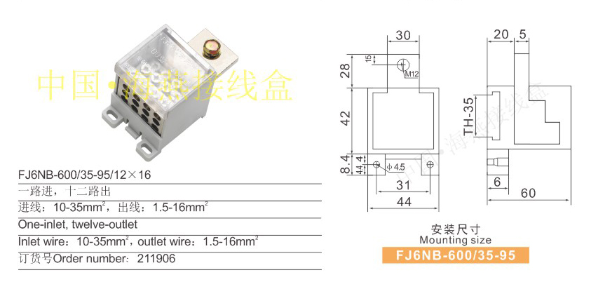 产品分类:FJ6NB- 600/35-95系列独立式零线端子接鼻式258