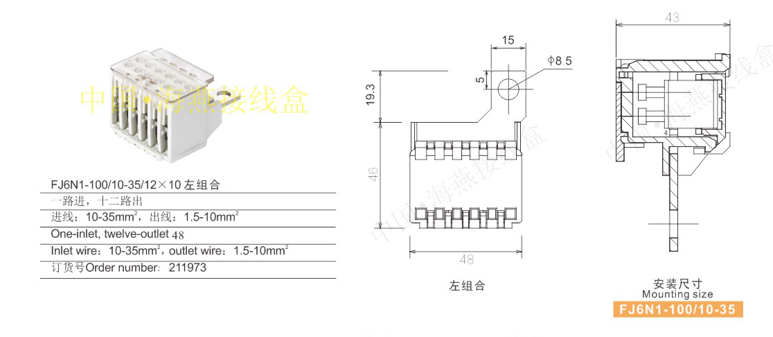 产品分类:FJ6N1- 100/10-35系列零线开关端子273-276