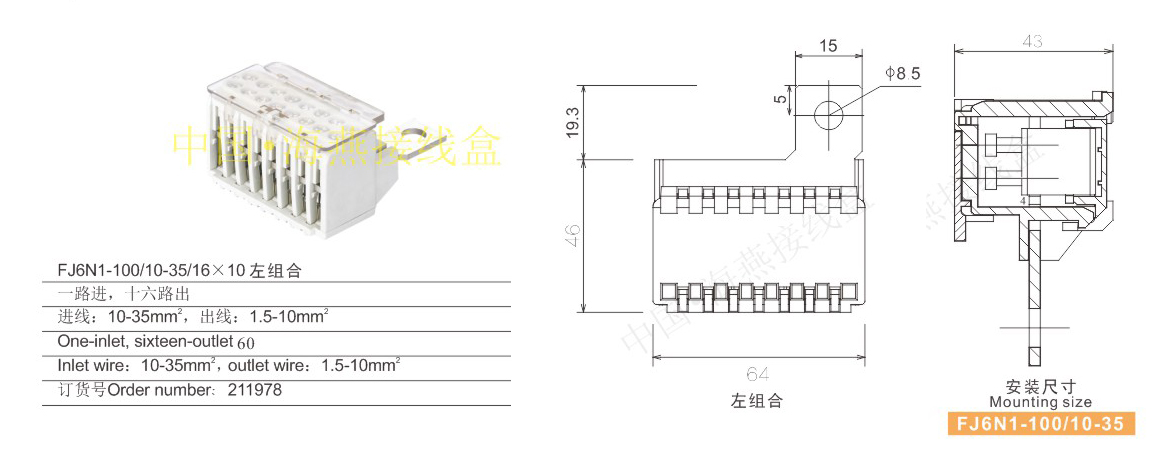 产品分类:FJ6N1- 100/10-35系列零线开关端子273-276