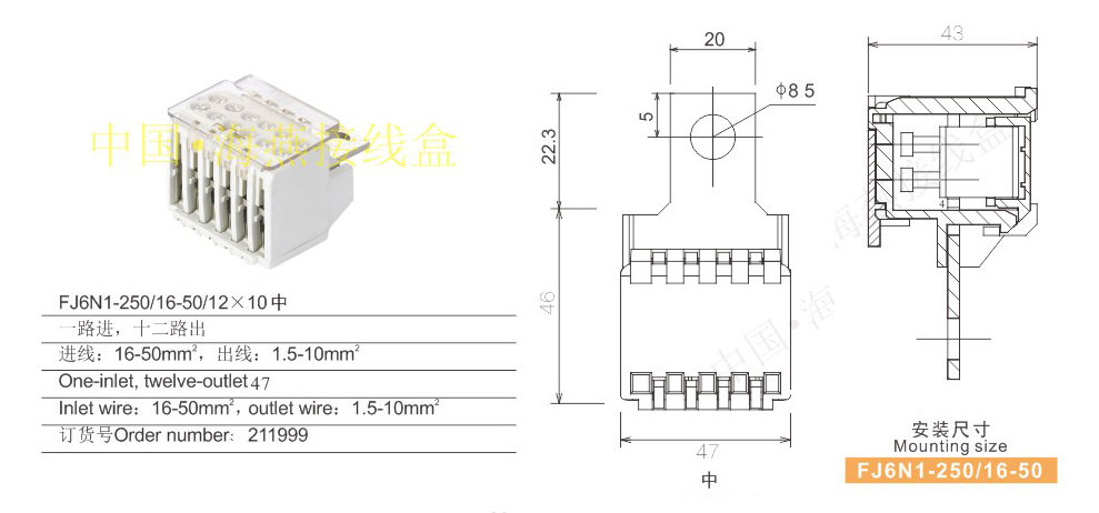 产品分类:FJ6N1-250/16- 50系列零线开关端子279-282