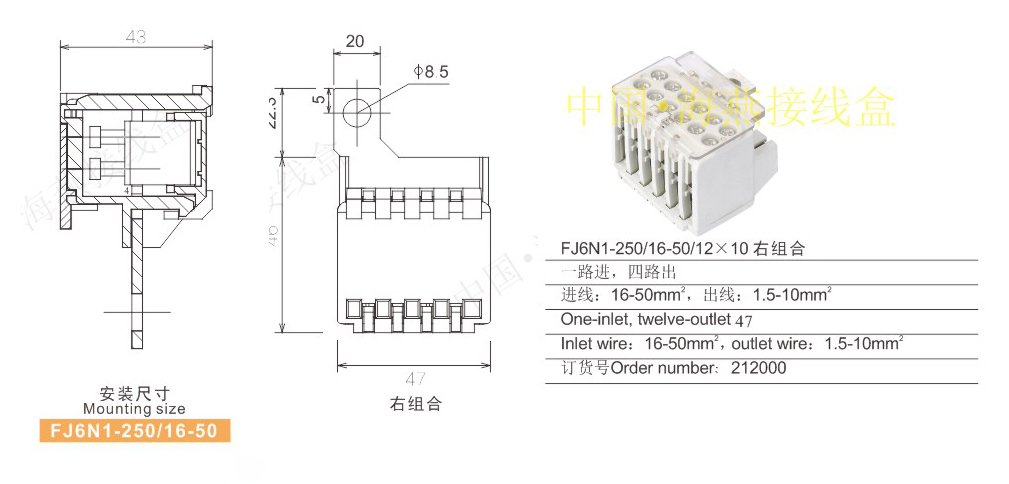 产品分类:FJ6N1-250/16- 50系列零线开关端子279-282