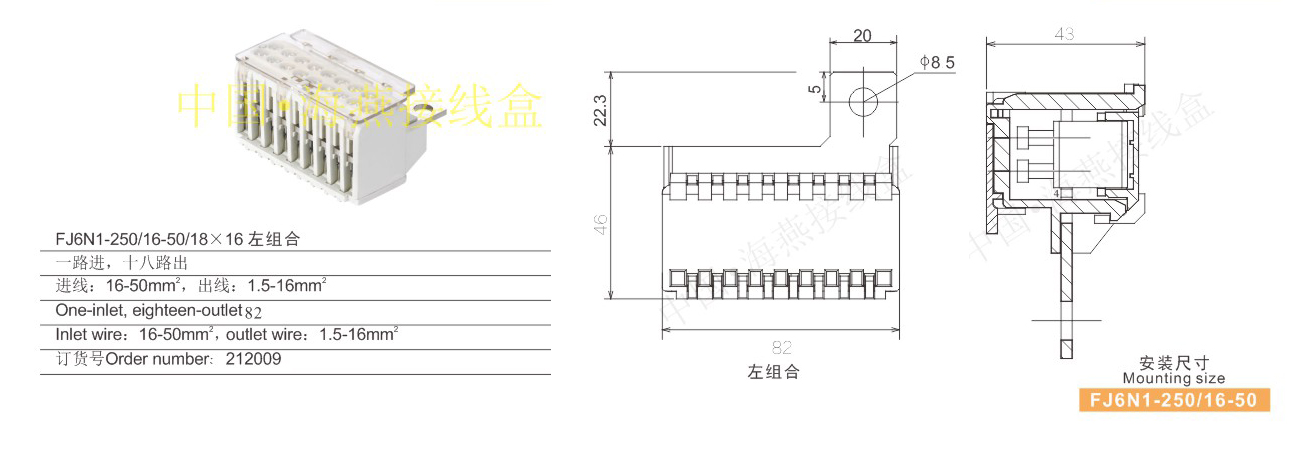 产品分类:FJ6N1-250/16- 50系列零线开关端子279-282