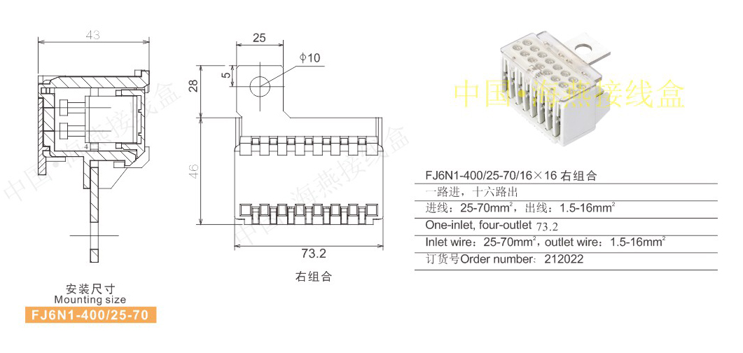 产品分类:FJ6N1-400/25-70系列零线开关端子284-287