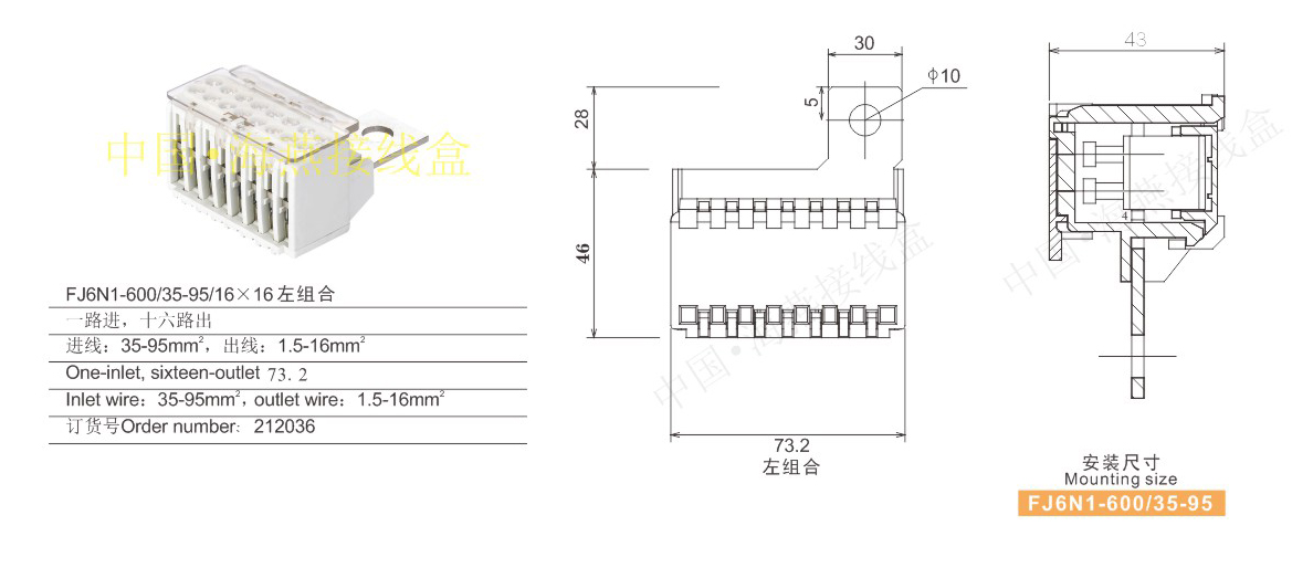 产品分类:FJ6N1-600/35-95系列零线开关端子289-291