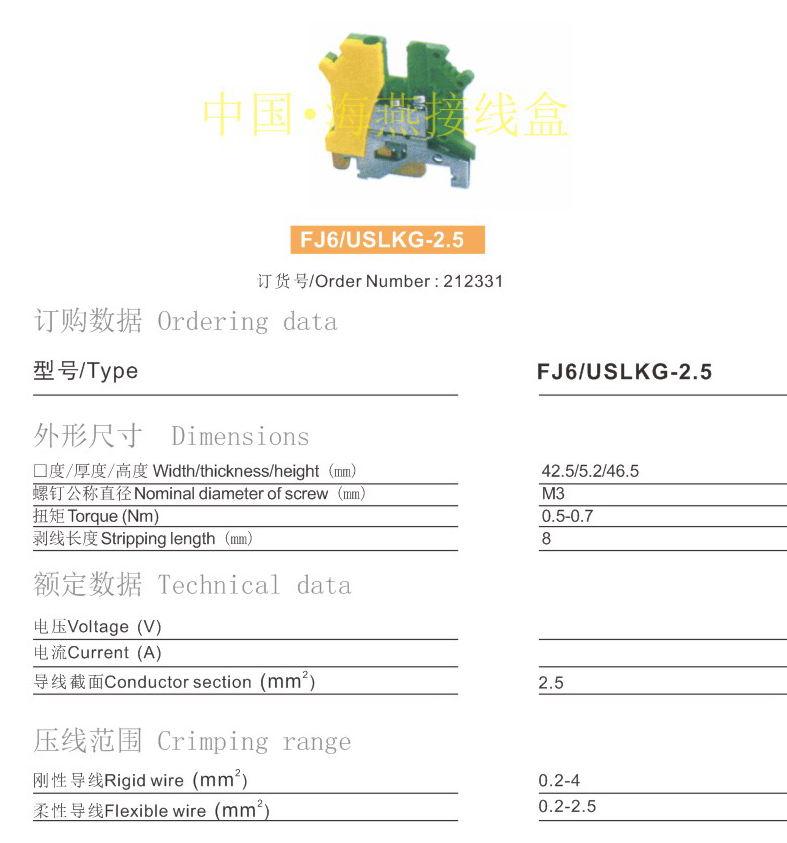 FJ6/USLKG-2.5接地型接线端子