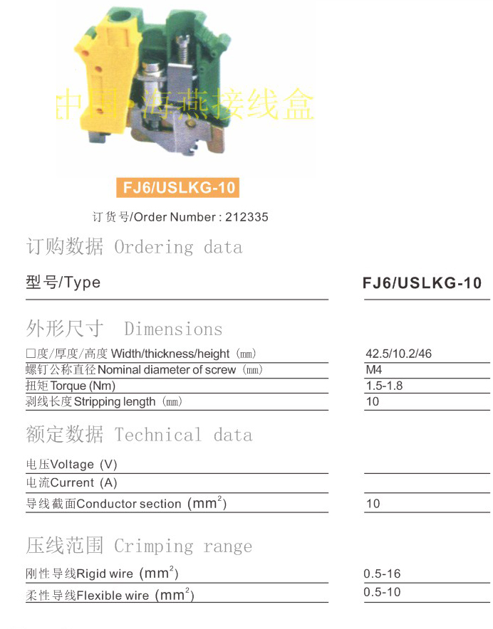 FJ6/USLKG-10接地型接线端子