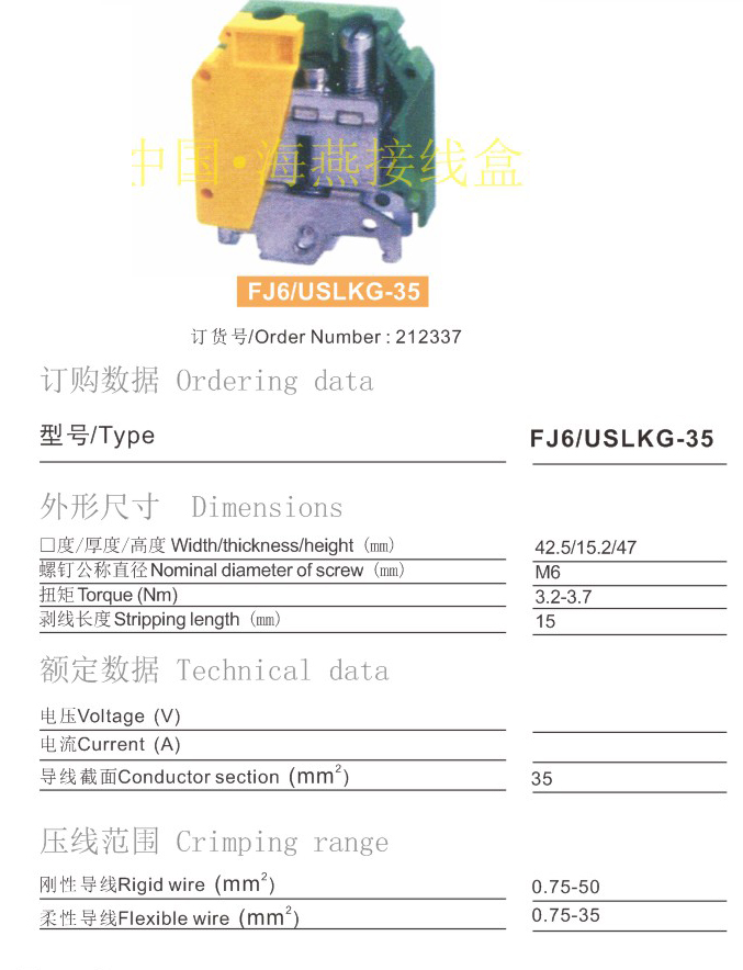 FJ6/USLKG-35接地型接线端子