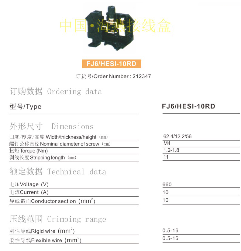 FJ6/HESI-10RD熔断型接线端子
