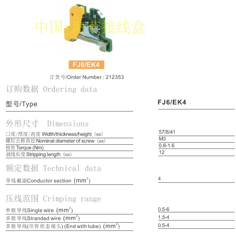 FJ6/EK4接地型接线端子