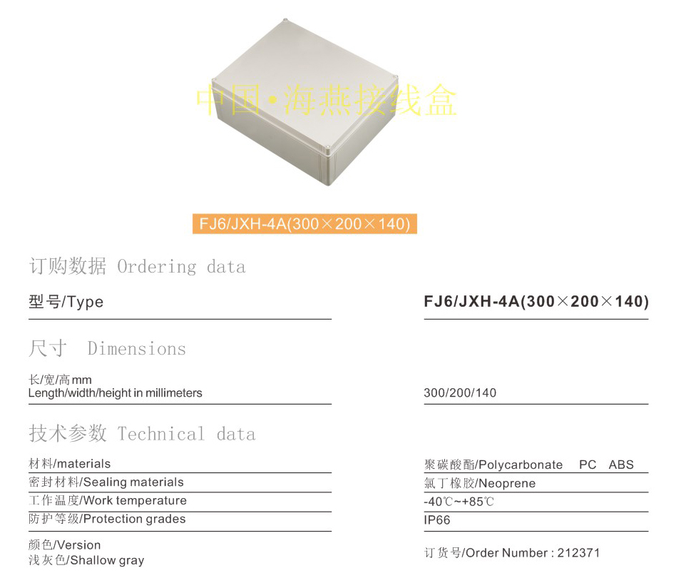 FJ6/JXH-4A(300×200×140)接线盒