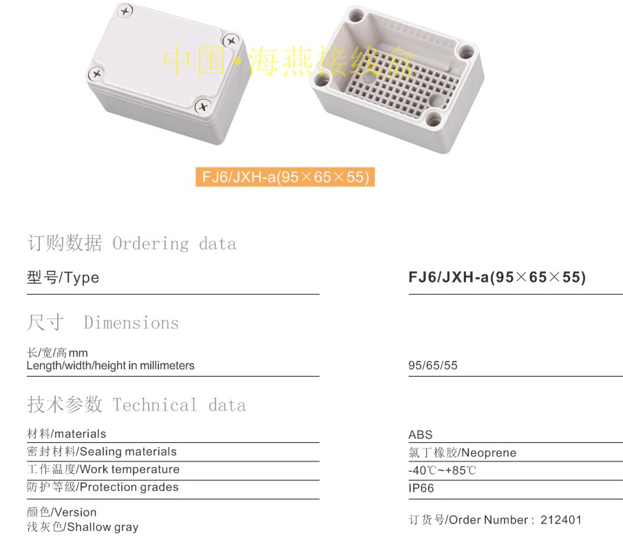 FJ6/FX、FT系列ABS翻盖防水基业盒382
