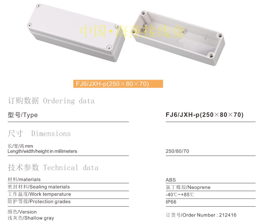 FJ6/FX、FT系列ABS翻盖防水基业盒382