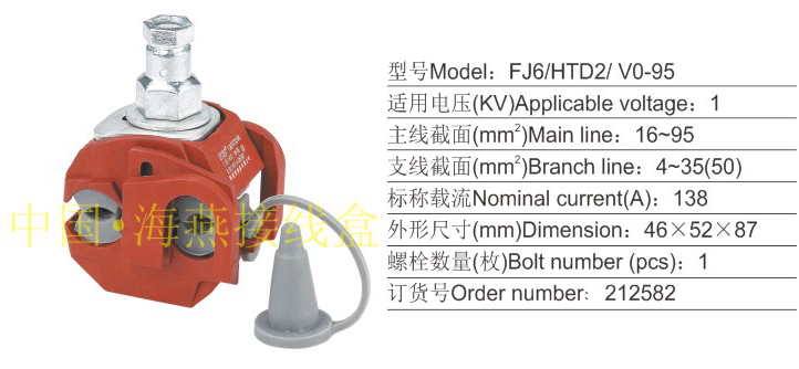 产品分类:FJ6/HYJ HYC、 HYD10/ V0系列防火绝缘穿刺线夹1KV394-400