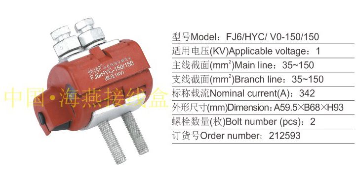 产品分类:FJ6/HYJ HYC、 HYD10/ V0系列防火绝缘穿刺线夹1KV394-400
