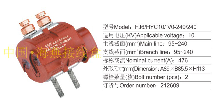 产品分类:FJ6/HYJ HYC、 HYD10/ V0系列防火绝缘穿刺线夹1KV394-400