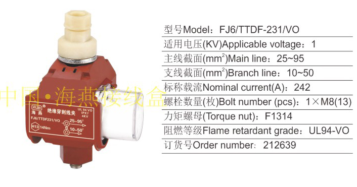 产品分类:FJ6/TTDF系列防火绝缘穿刺线夹1KV405-407