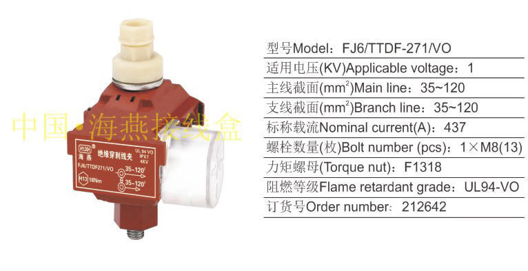 产品分类:FJ6/TTDF系列防火绝缘穿刺线夹1KV405-407