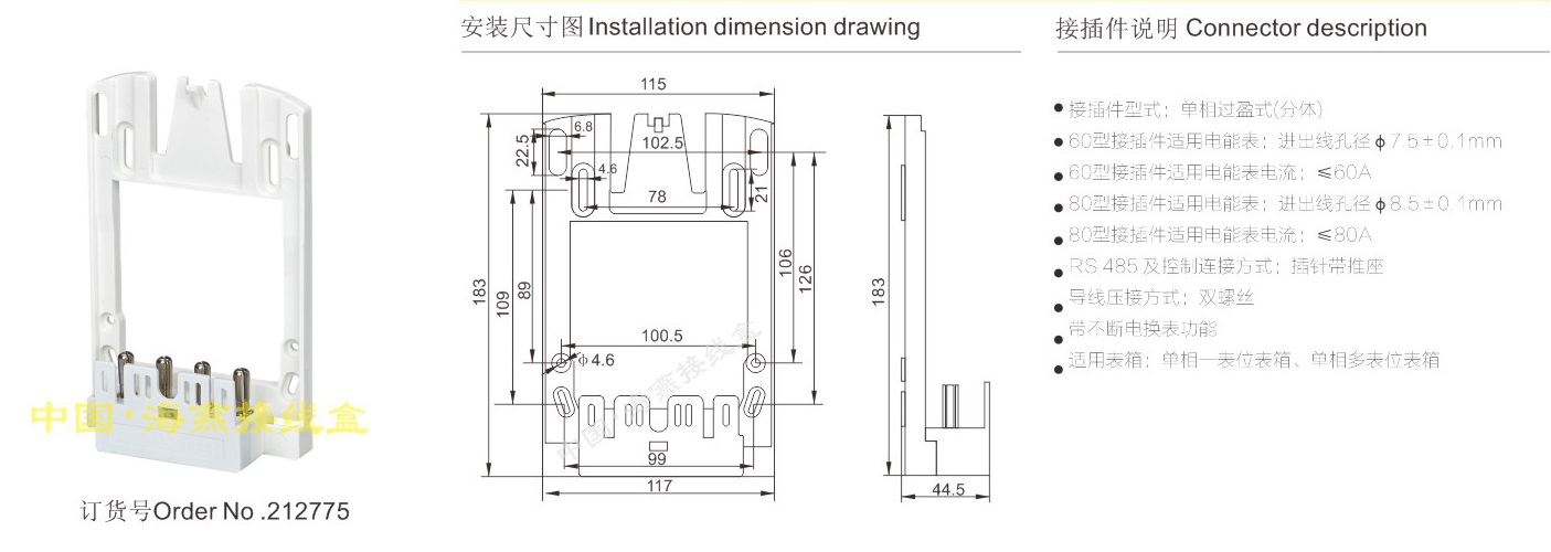 英文名称:Single-phase interference watt-hour meter connector (split)
