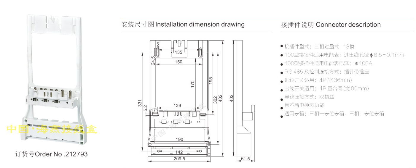 英文名称:Three-phase interference electric energy meter connector (integrated)
