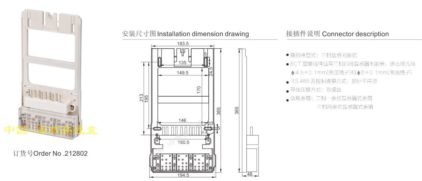 产品分类:三相互感电能表接插件与联合接线盒-体式448