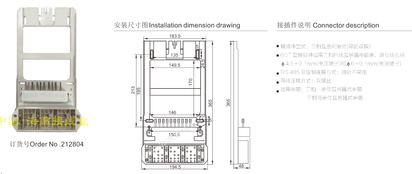 产品分类:三相互感电能表接插件与联合接线盒单独组合449