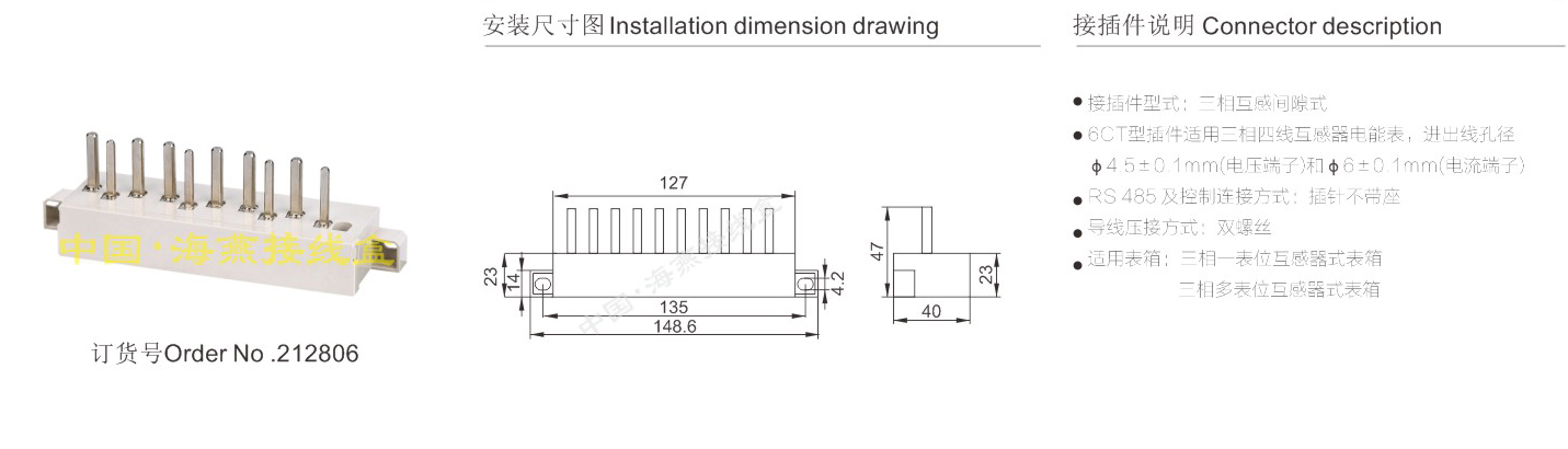 英文名称:Three mutual inductance gap type simple electric energy meter connector