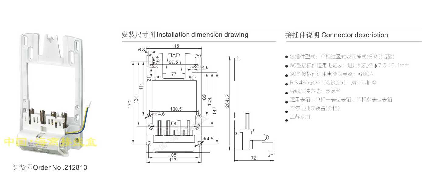 产品分类:单相分体电能表接插件454-455