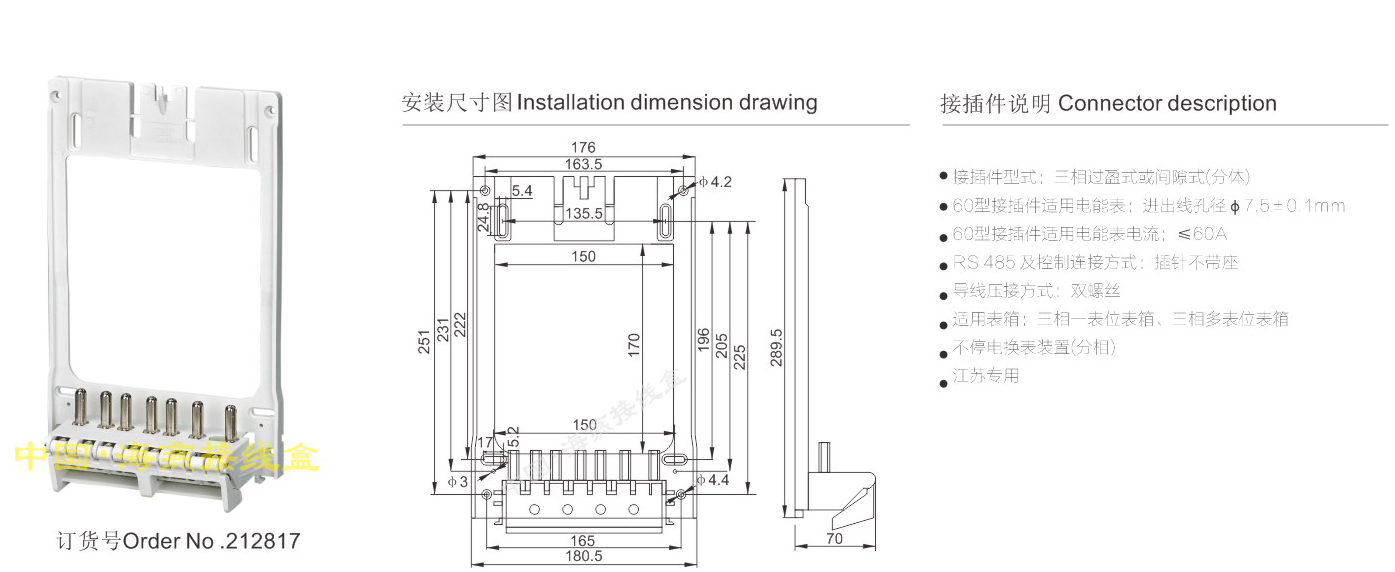 英文名称:Three-phase interference watt-hour meter connector (split)